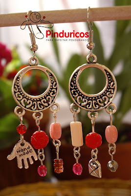 Brincos pendentes em prateado com detalhes amorosos em tons de rosa e branco.